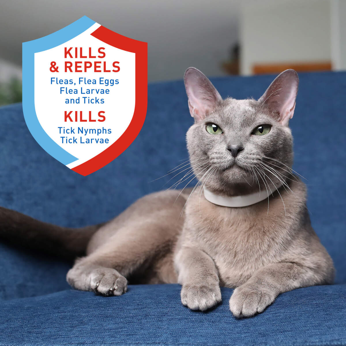 The Adams Plus Flea & Tick Collar for Cats provides immediate relief from biting fleas, ticks, flea larvae, flea eggs, tick nymphs, and tick larvae through contact. This collar prevents reinfestations by breaking the flea life cycle, killing the flea eggs and flea larvae, and providing continuous prevention against new fleas and ticks for up to 7 months. The active that cover the surface of the collar are rubbed onto the animals fur, and the solution works its way down through your cats natural hair oils and across the body to protect head-to-toe. This collar is fully adjustable and offers a unique break-away feature designed to ensure peace of mind. Kills and repels fleas, ticks, flea eggs, and flea larvae through contact|One step to treat and prevent reinfestations|Kills 3 stages of the flea and tick life cycle|Each collar provides 7 months protection|Break-away collar featureTetrachlorvinphos 14.55%, (S)-Methoprene 1.02%, OTHER