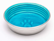 Reminiscent of famous French cookware, Le Bol Dog Bowl are gorgeous, extremely durable, stainless steel Bowl with a ceramic-like interior. Interiors are brightly colored with a look of ceramic overstain, which highlights the ribbed walls and embossed paw in the bottom. Le Bols also have an integrated skid and noise-free rubber base. And of course, they are top-rack dishwasher safe.