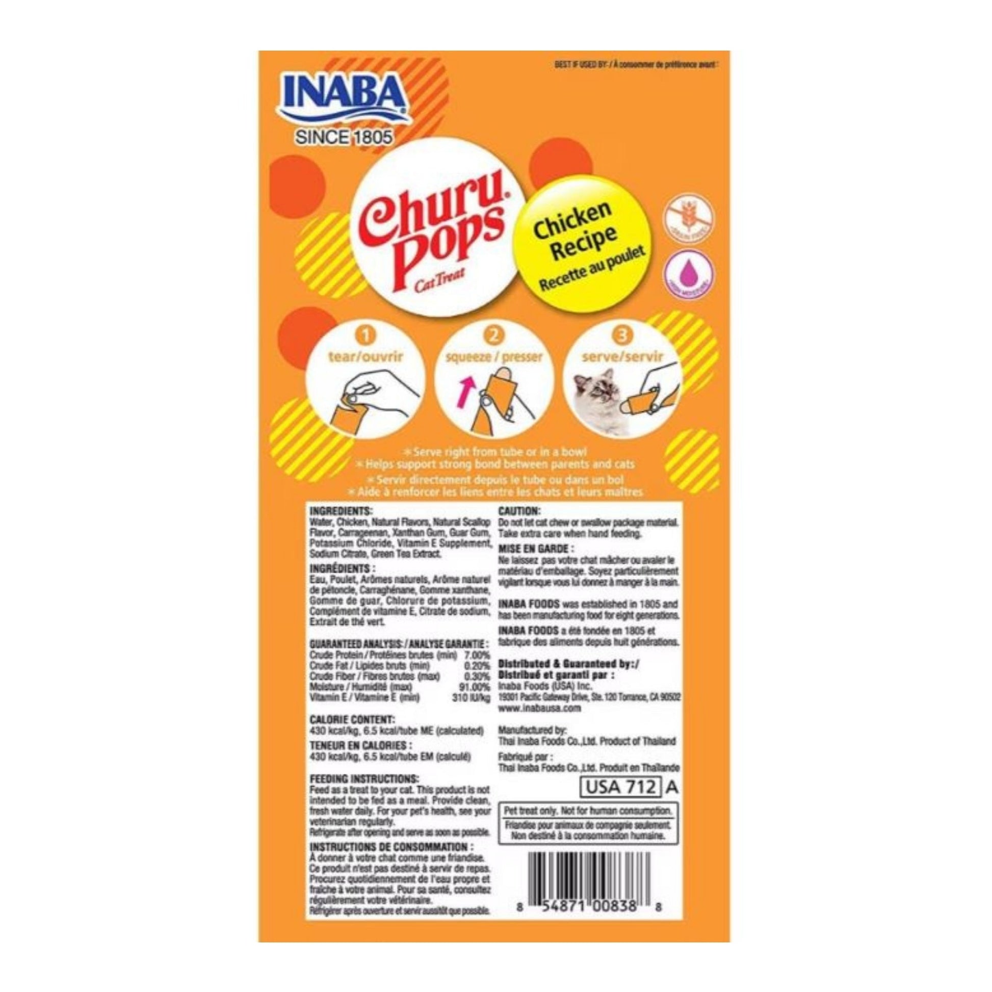 These juicy and tasty treats for cats are made with 100% pure and natural wild tuna or farm-raised chicken! Available in three delectable varieties, Churu? Pops are high in moisture felines need for health. Simply tear open a tube and give it a little squeeze to feed these grain-free, preservative-free treats by hand. You can also pour them into a bowl or use as a tasty topper on wet or dry food.